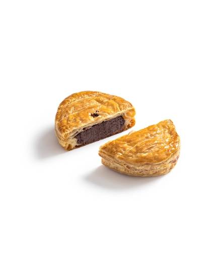 All‑butter puff pastry, almond cream, and dark chocolate ganache.