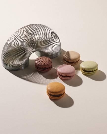 Dark chocolate ganache nestled between crisp shells with intense flavours and extreme silkiness.