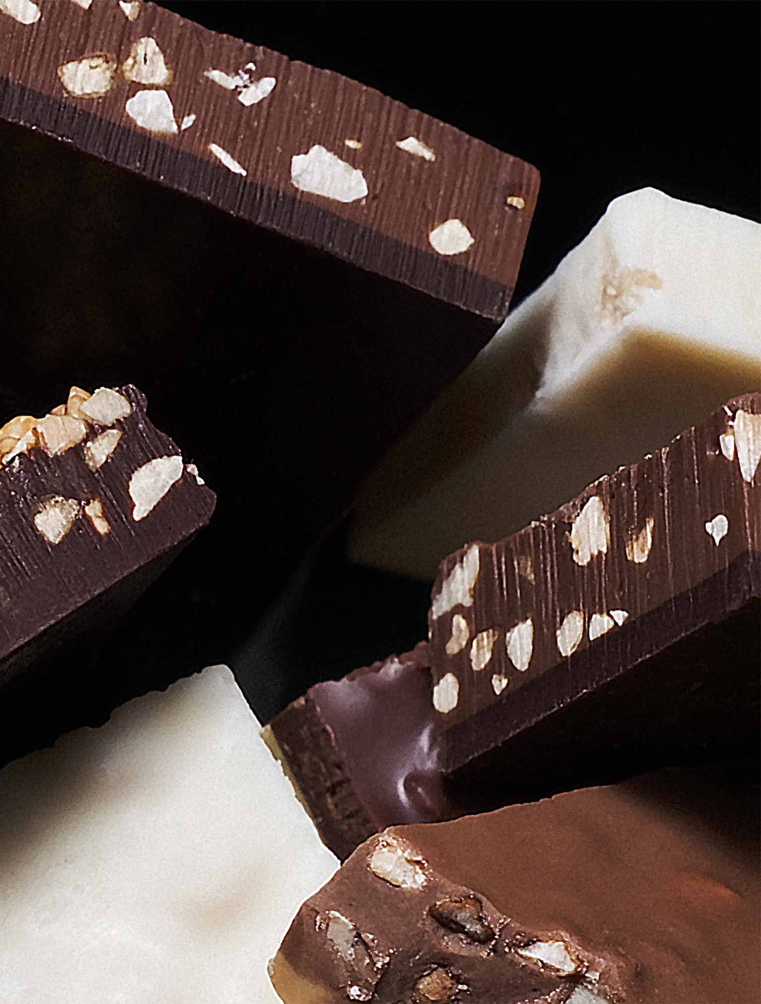 The alchemy of cocoa characteristics is revealed with exceptional ingredients. The sensations follow one another in nuances and length in the mouth without ever masking the chocolate.