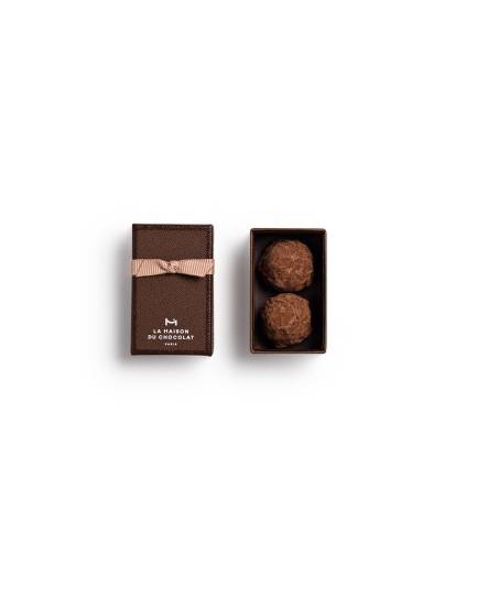Are you a lover of pure chocolate truffles? Discover the perfection of a dark chocolate ganache with bold round flavours featuring a divine, airy texture, in our plain chocolate truffles. Our boxes are available in different sizes.