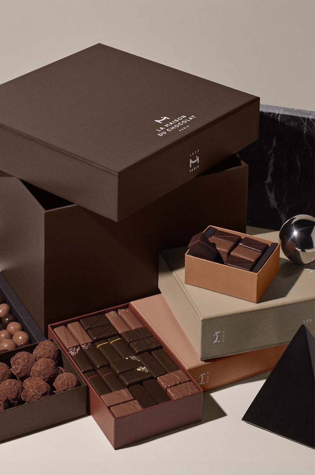 Romance takes flight on a hot-air balloon ride over Paris, the city of love. Feel the embrace of a sweet Parisian breeze beckoning your love closer as you float through the clouds, leaving the hustle and bustle of Paris far behind... This Valentine's Day, La Maison du Chocolat unveils limited-edition flavors of strawberry jam, quince marmalade, juniper berries, and black sesame.