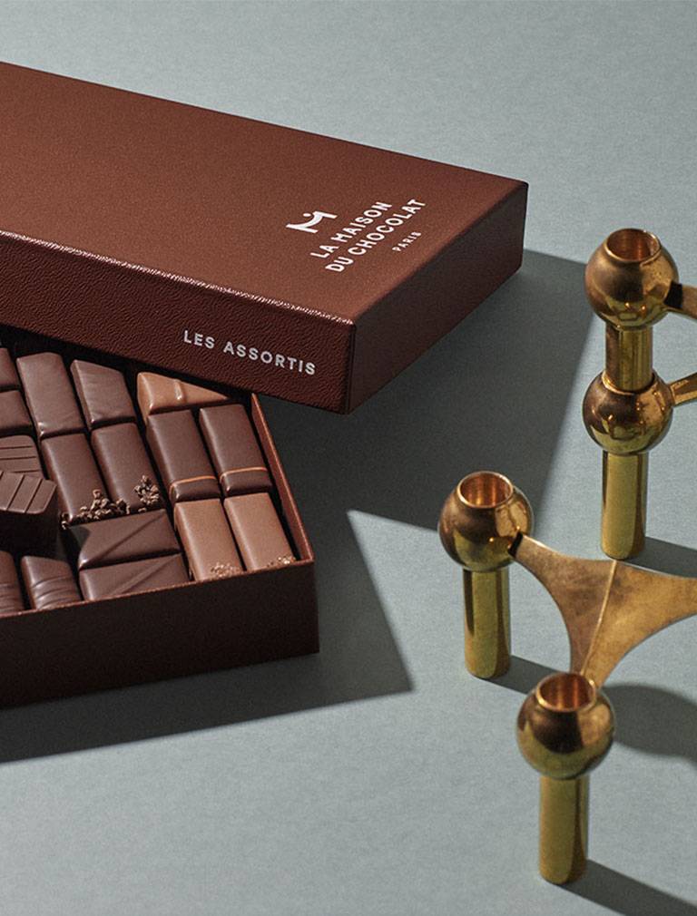 Explorez notre collection de chocolats artisanaux entièrement fabriqués à la main pour trouver une idée de cadeaux originale ou pour vous faire plaisir tout simplement. Quelle que soit l'occasion (anniversaire, Noël, Saint-Valentin...), votre coffret rêvé de chocolats de qualité figure parmi notre sélection. Étui de 3 carrés gourmands, petite boîte d'orangettes ou grand coffret prestige de 60 chocolats noirs et au lait : à vous de choisir !