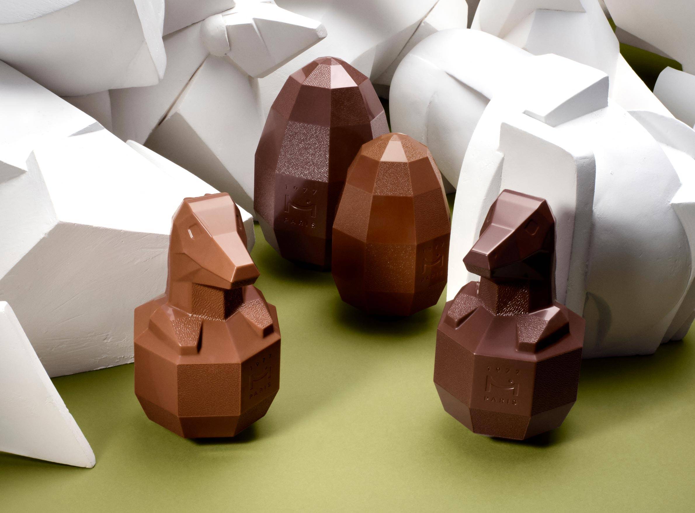 Pour Pâques, Nicolas Cloiseau a choisi d’inviter le sculpteur animalier Jacques Owczarek et de dialoguer, à 4 mains, autour de la matière et du volume. Cette collection célèbre la vitalité et l’énergie à travers des créations chocolatées aux lignes expressives.