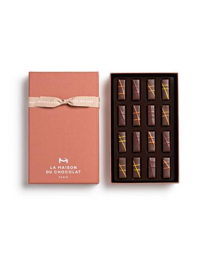 気品あふれるギフトボックスの中に美しく並んだボンボン・ドゥ・ショコラの詰め合せ。美味しいチョコレートとともに過ごす極上なひとときをご提案いたします。