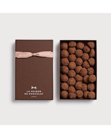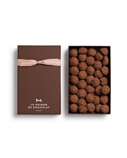 パリッとした食感のダークチョコレートでコーティングしカカオパウダーをまぶした、軽やかなテクスチャー。とろけるようなガナッシュムースの洗練されたプレーン トリュフの詰合せ。