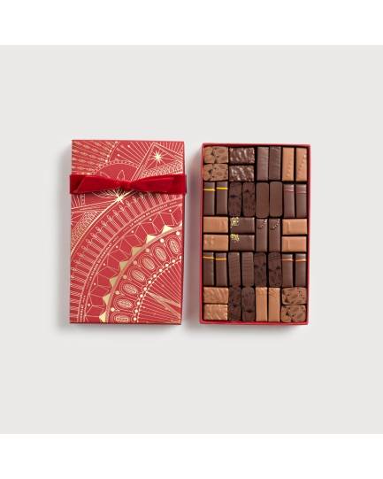 光輝く美しい街、パリ。多彩な歴史的建造物とカカオの花や実など植物のモチーフを美しくデザインした華のあるクリスマスコレクション。クリスマス限定レシピを含むメゾンを代表する40粒のボンボン・ドゥ・ショコラ...