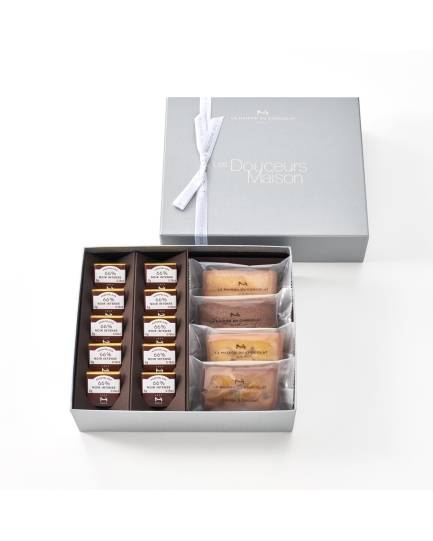 メゾンの人気の焼き菓子、フィナンシェと一口サイズのタブレットをセットにし、気軽な贈り物やご友人とのひと時に華を添える美味しいギフトセット。