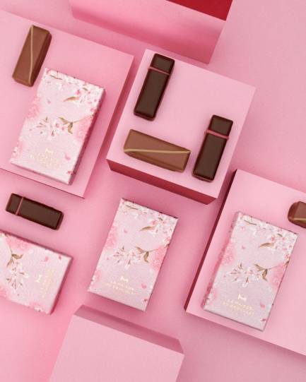 【季節限定商品・次回入荷2026年9月予定】ブリュットとロゼ、2種のシャンパーニュ風味の香り豊かなガナッシュ。目にも華やかな美しいチョコレートとともに心躍るひと時をお楽しみください。