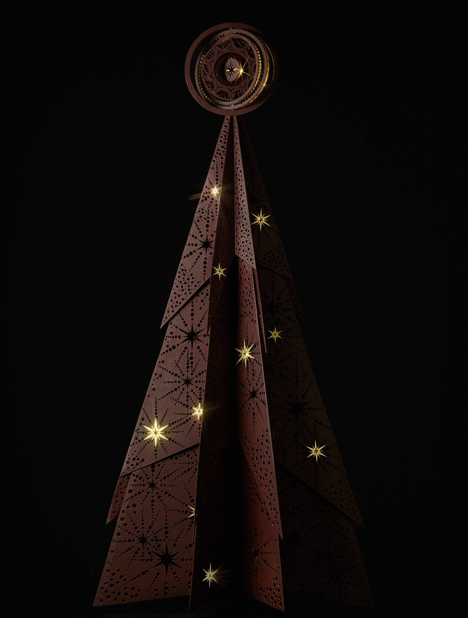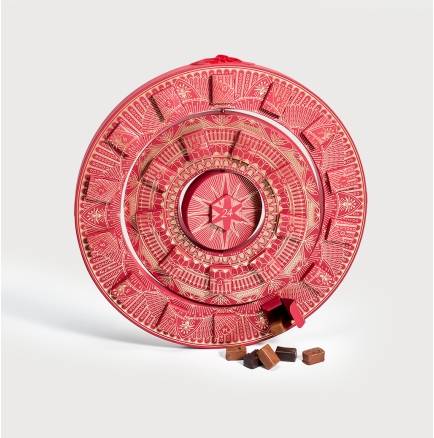 凱旋門から放射状に広がる大通りをイメージした、気品ある美しさのアドベントカレンダー。24個の小さな扉を開くとダークやミルクの美味しいプラリネやタブレットが隠れています。立体感あるデザインは中央部分が優雅に動くオブジェとして飾る喜びも加わり、クリスマスまでの毎日を特別に彩ります。