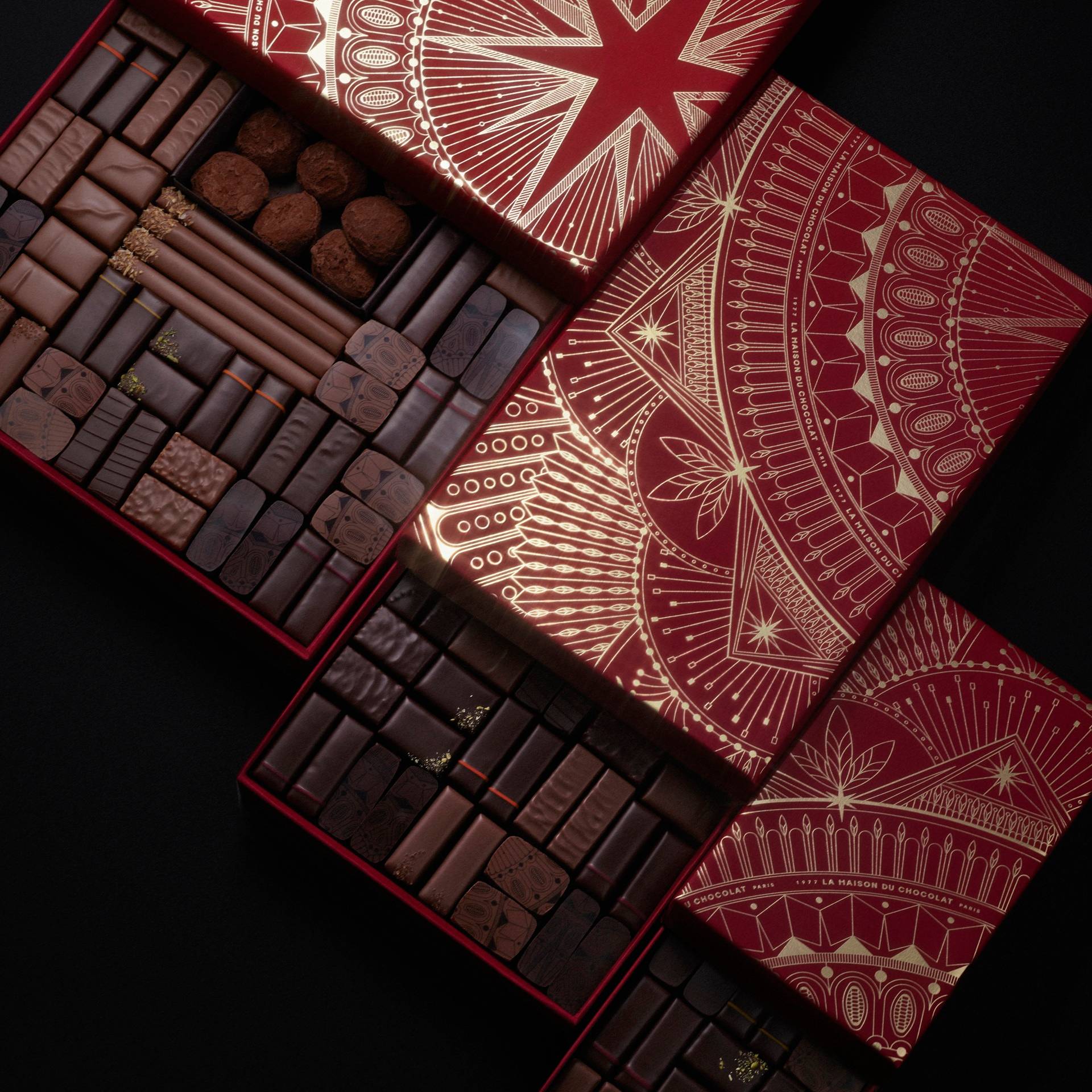今年のラ・メゾン・デュ・ショコラのクリスマスは光り輝く永遠の都、パリを美しいアートデザインで表現。パリを代表する歴史的建築やカカオをモチーフに、目にも艶やかな真紅とゴールドのカラートーンで描いた細密画の繊細なデザインで気品あふれるコレクションです。ホリデーシーズンの華やかな気分を盛り上げる美しいクリスマスコレクションと共に美味しい季節をお楽しみください。