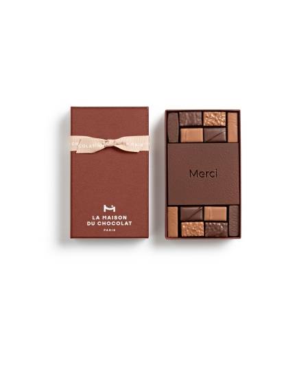 贈り物に最適な、美しく華やかな楕円形のボックスに、ラ・メゾン・デュ・ショコラの選りすぐりのチョコレートをバランスよく詰合せました。パーティシーンの中心に彩りを添える贈り物です。