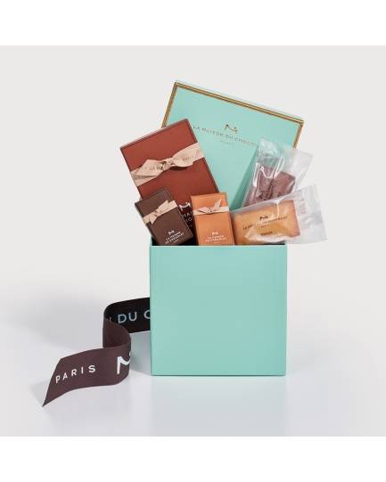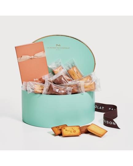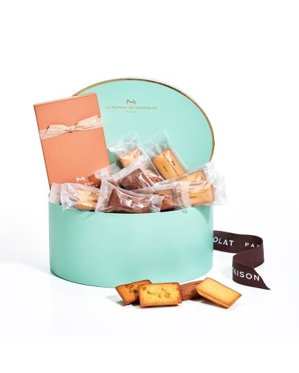 アーモンドプードルの風味豊かなナチュールと、ガトーショコラのような濃厚な味わいのショコラ、オレンジコンフィを混ぜ込んだフィナンシェの3種のフィナンシェの詰合せ。品の良いシルバーのボックスに収まり、ギフトにもおすすめです。