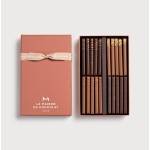 気品ある美しいボックスに収められた4種のバトン状のプラリネ。ナッツの風味豊かなプラリネとココナッツフレークやクレープダンテルなどの食感のマリアージュをお楽しみください。