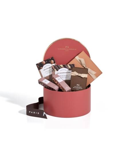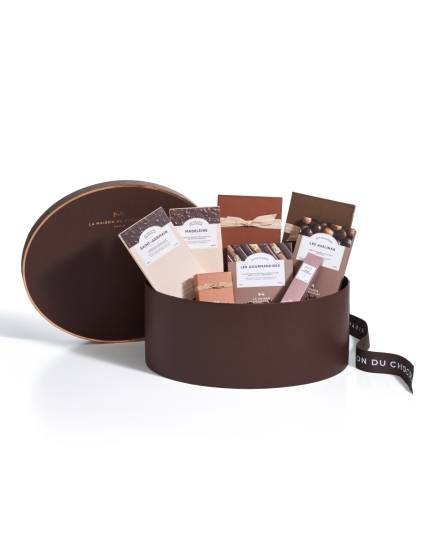 「ボワット シャポー ヴィクトワール」は、アソルティモン メゾン、オランジェット50g、バトネ プラリネ ギフトボックス、フィナンシェ ナチュール、フィナンシェ ショコラ、タブレット マドレーヌ、トリュフ プレーン2粒を詰め合わせた贅沢なセットです。美しいボックスには、メゾンの代表的なチョコレートや焼き菓子がたっぷり詰め込まれ、贈り物や特別なひとときにぴったりです。