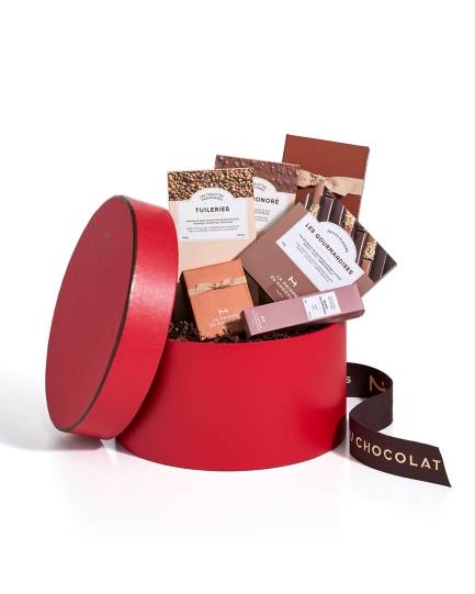 目を引く色鮮やかなボックスに収められた4種のバトン状のプラリネ。ナッツの風味豊かなプラリネとココナッツフレークやクレープダンテルなどの食感のマリアージュをお楽しみください。