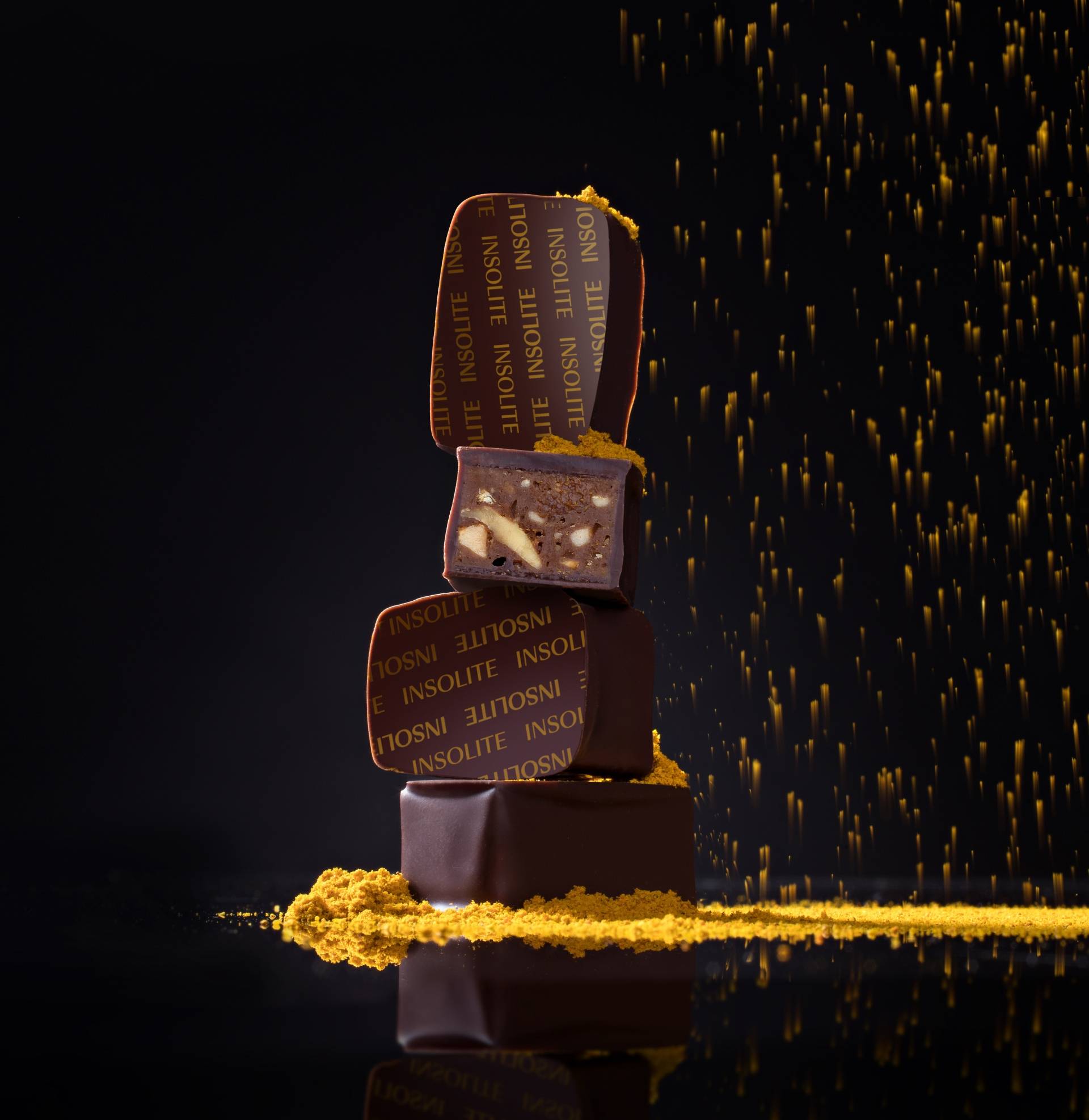 カカオバターとキャラメリゼされたナッツにスパイスを直接練り込むことで、インドカレースパイスの華やかな果実味が弾け、ナッツのカリカリした食感と共に絶妙なバランスをもたらします。