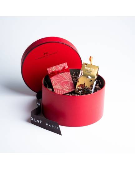 煌めくパリの街並みをイメージしたラ・メゾン・デュ・ショコラの「パリ エテルネル」と、香り高いクスミティーのクリスマスティーが出会い、贅沢で心温まるコラボレーションが誕生しました。 クリスマス限定のレシピや定番人気のチョコレートとクリスマス限定ティの奏でる美味しいハーモニーはゆったりと過ごす優雅なひとときを演出します。 真紅のボワットシャポーに収められた心も温める特別なセットと共に豊かな時間をお楽しみください。