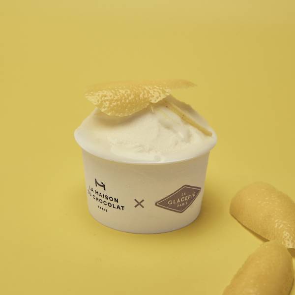 芳醇なバニラアイスの中心に、爽やかなレモンコンフィを忍ばせ、香ばしいアーモンド入りのミルクチョコレートで包みこみました。バニラの優しい余韻の中にレモンのアクセントが爽やかさをもたらします。