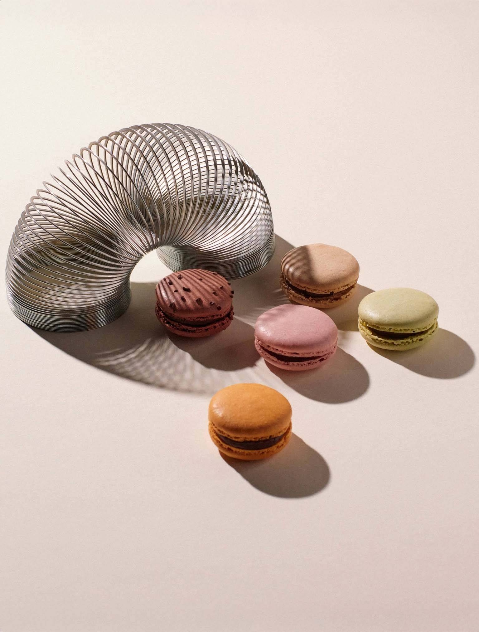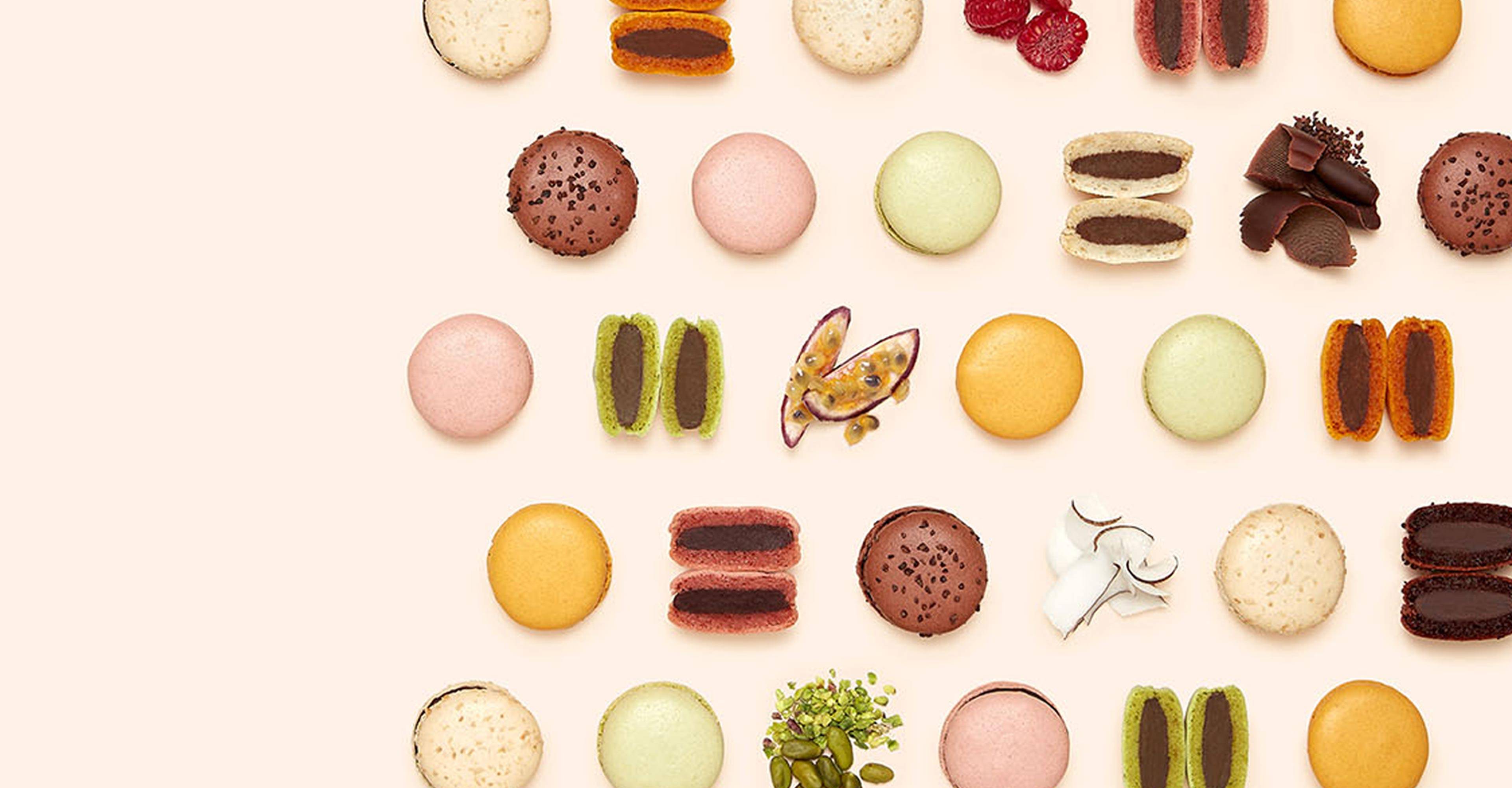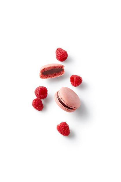 目にも美味しい彩りの、滑らかで光沢のあるマカロンコックは、アーモンドの風味豊かなフレンチメレンゲでできています。