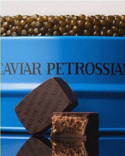 【アンソリット キャビア】原材料名:砂糖、カカオマス、ヘーゼルナッツ、 ココアバター、バター、アーモンド、全粉乳、キャビア、食塩、脱脂粉乳、バニラパウダー、ココアパウダー/乳化剤、香料