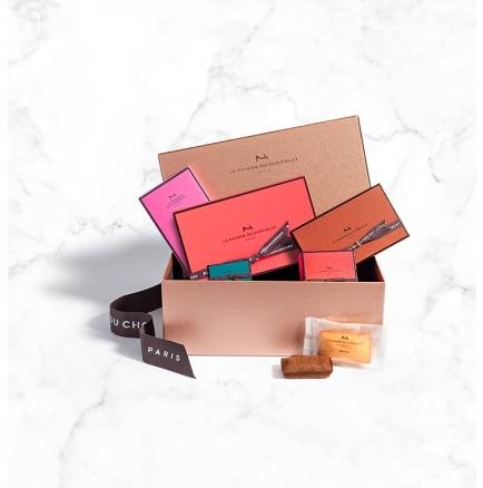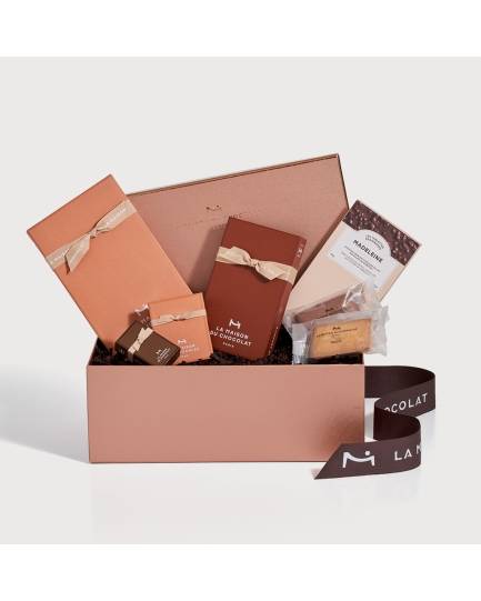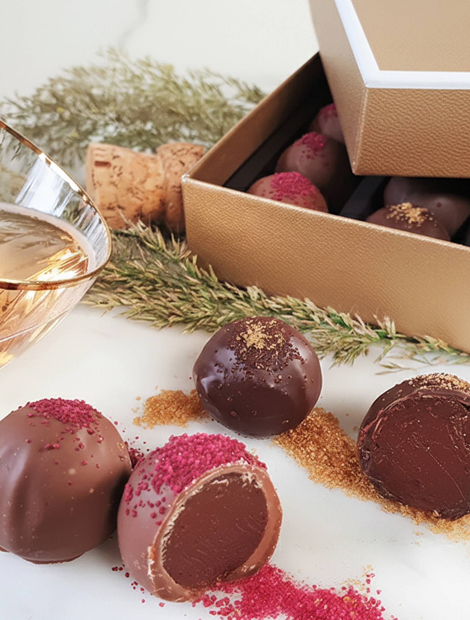 気品あるシャンバンゴールドの箱につややかなラウンド状のチョコレートが美しく並べられ、愛でる喜びも兼ね備えたコレクション、エフェルヴェソンス。丸い愛らしい姿はシャンパーニュの泡を連想させます。