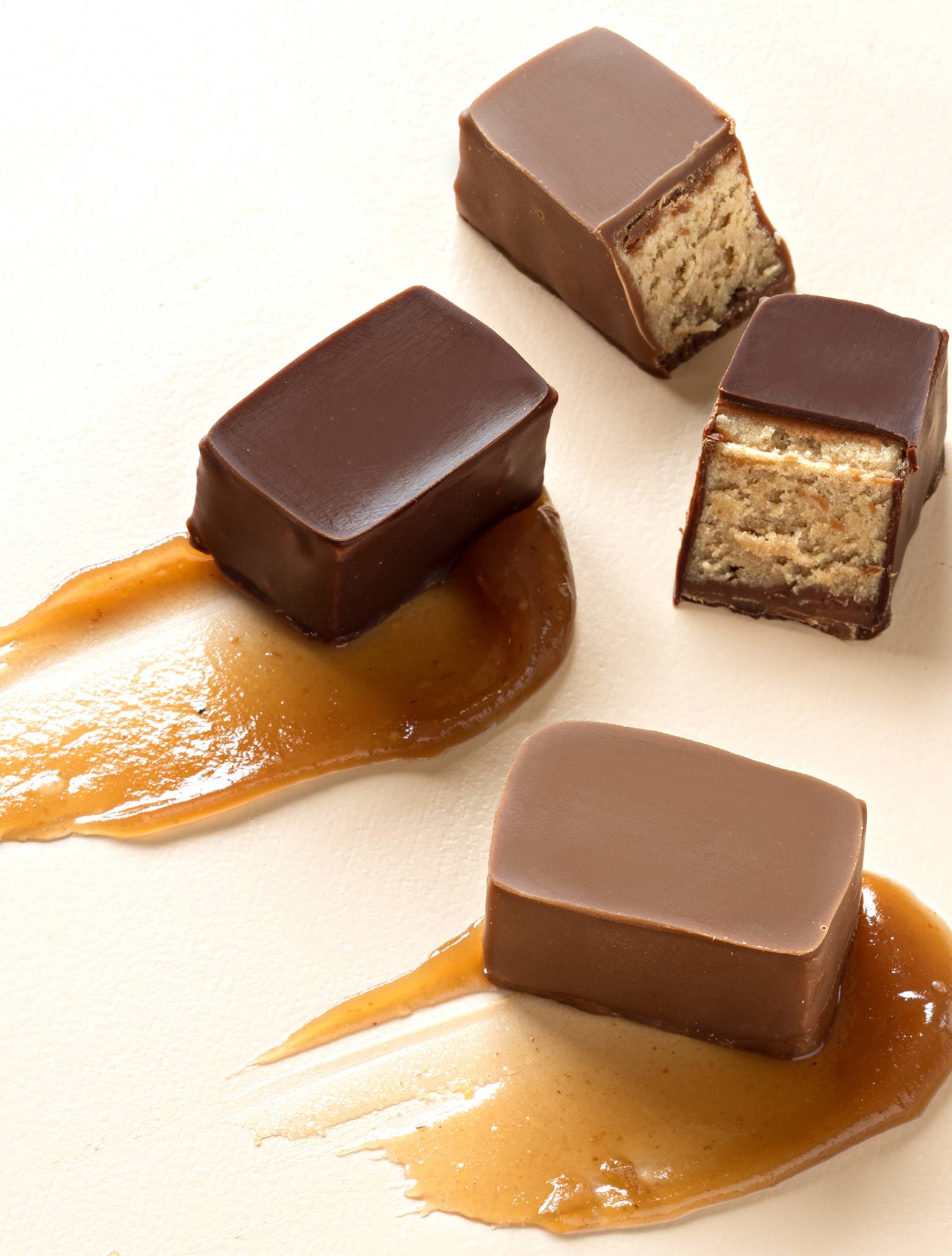 ふんわりとしたマロンムースを、ミルクとダーク、2種のチョコレートで包み込んだ小さなボンボン・ドゥ・ショコラ「マロニ」。ほのかに香るラム酒が栗の豊かな風味を引き立て、奥行きのある味わいを生み出します。