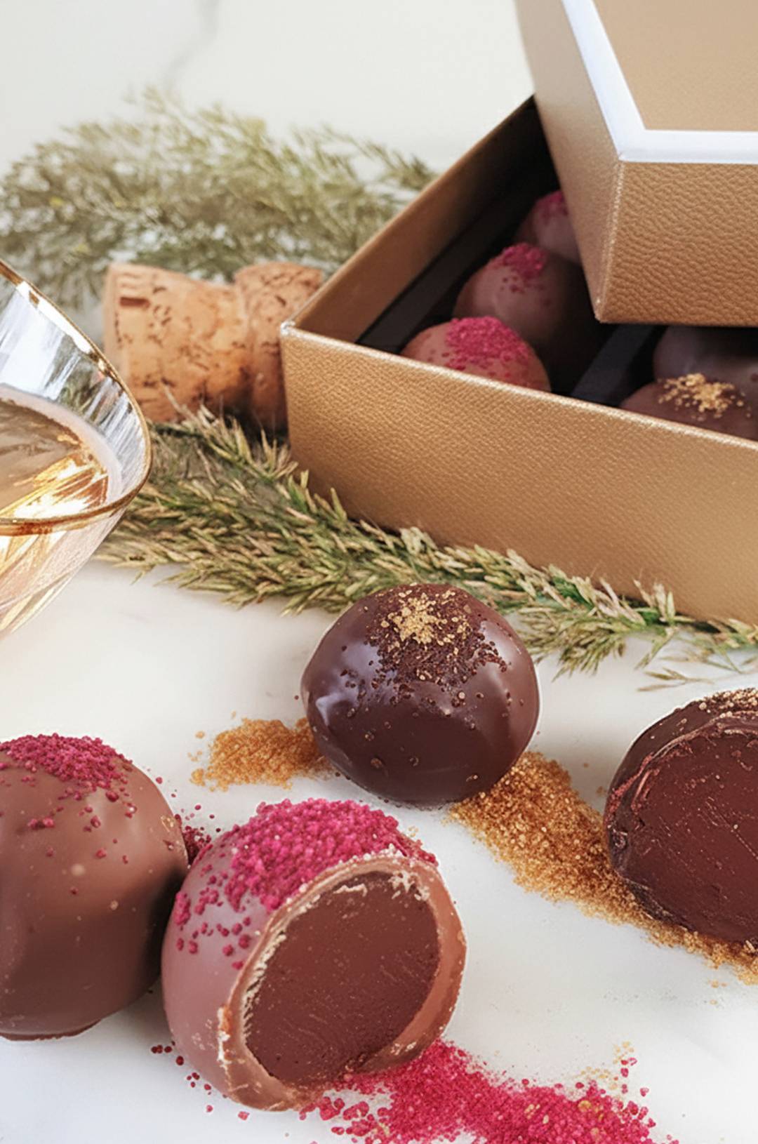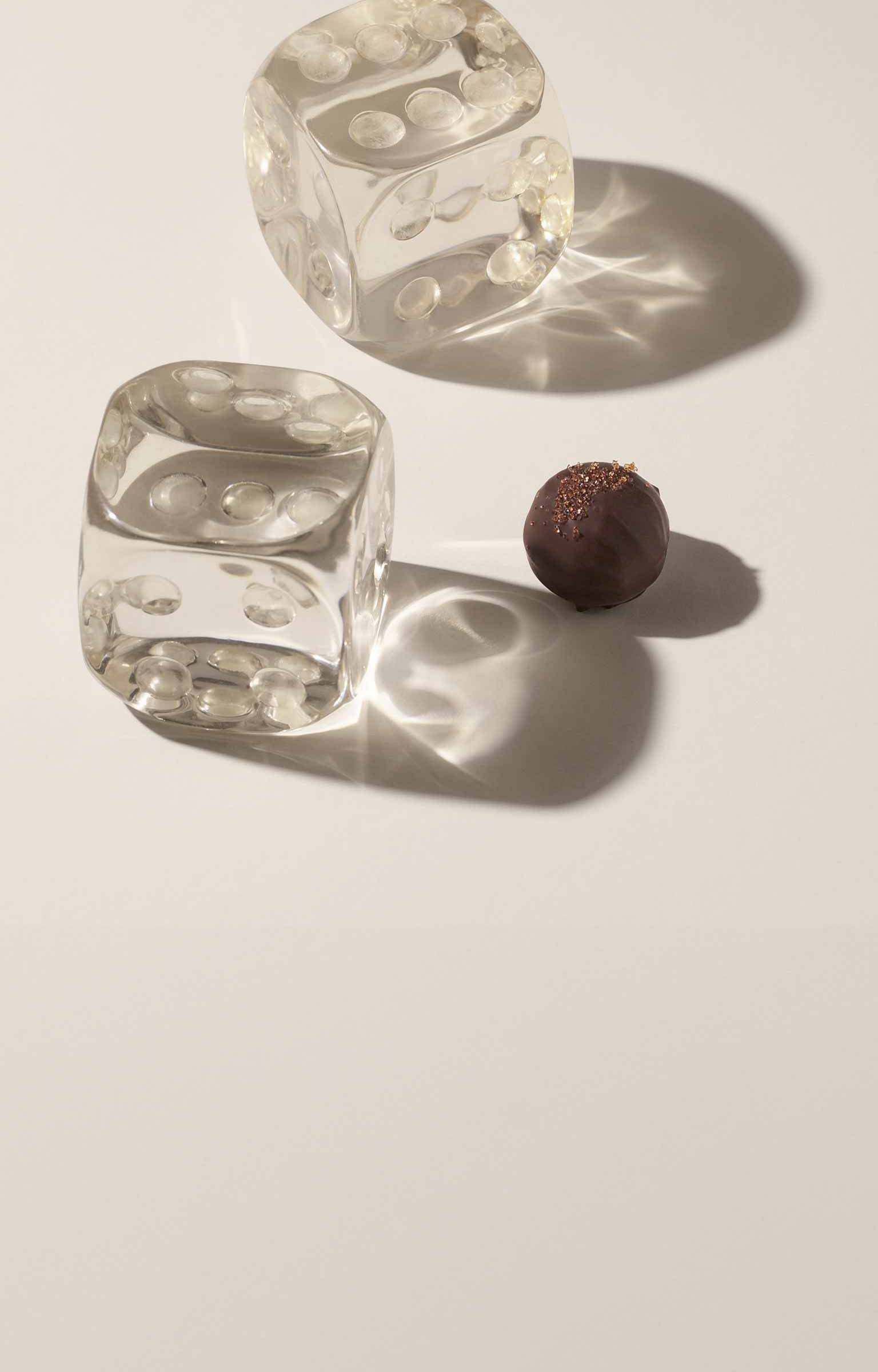 気品あるシャンバンゴールドの箱につややかなラウンド状のチョコレートが美しく並べられ、愛でる喜びも兼ね備えたコレクション、エフェルヴェソンス。丸い愛らしい姿はシャンパーニュの泡を連想させます。