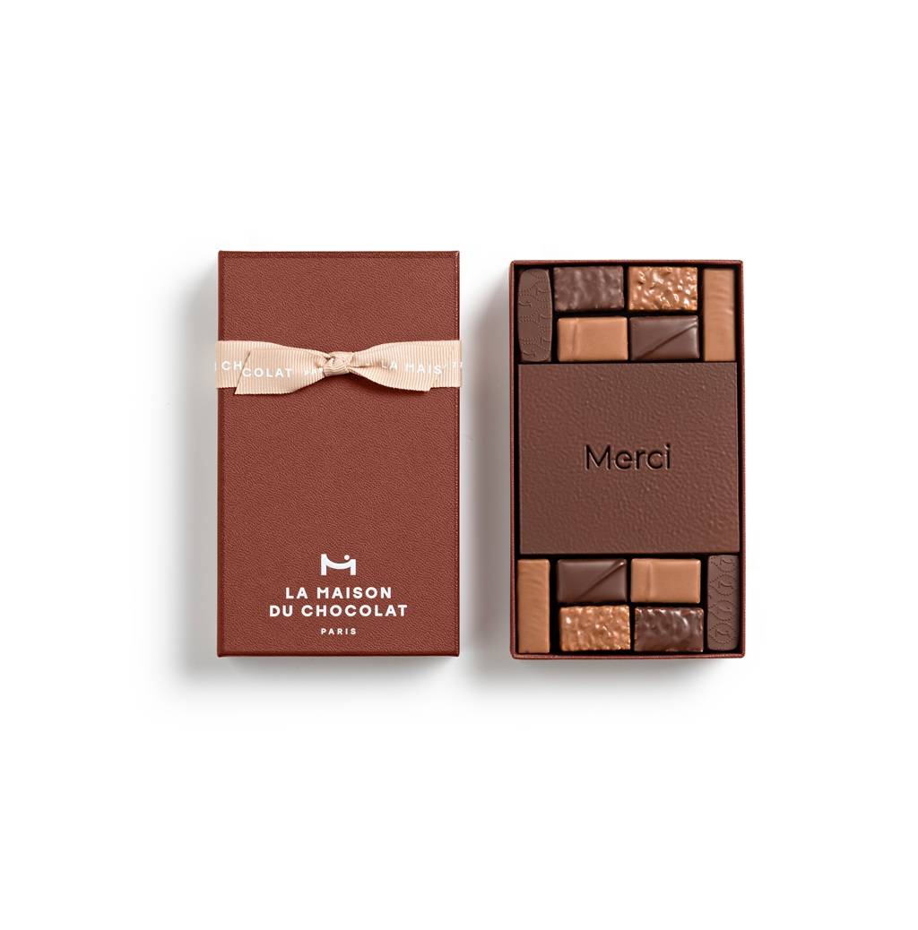 【Online 限定取扱い商品】【送料無料】大切な方へ想いを伝える贈り物に、美味しいメッセージプレートを贈りませんか?定番人気のガナッシュとプラリネの中央にフランス語のメッセージ、Merciのメッセージプレートが想いを伝えます。