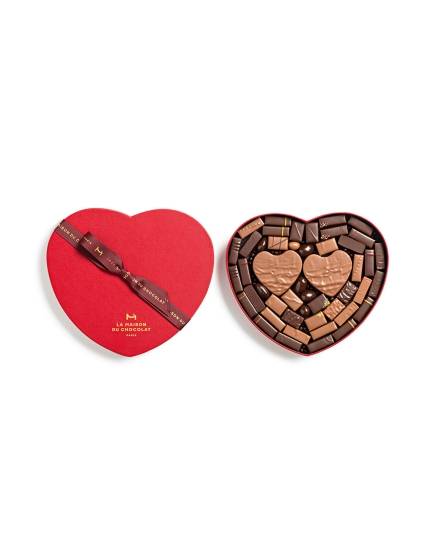 這款心形禮盒包含 La Maison du Chocolat的精選經典朱古力和一件限時口味榛果心形口口香。